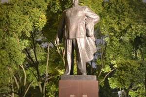 上海南京路尽头的陈毅广场,新中国第一任上海市市长陈毅的塑像昂然矗立。陈毅塑像坐北朝南,用青铜浇注,高5.6米,底座用红色磨光花岗石砌成,高3.5米,塑像再现了陈毅同志视察工作时的典型姿态,显示他一路风尘,勤勤恳恳的公仆形象,又有和蔼可亲,虚怀若谷的儒将风度。每逢周末,在塑像前都将举行隆重热烈的广场音乐会。